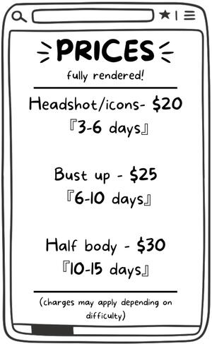 ※ Please do not RUSH me to finish the commission. Do understand as I also have my own time and currently a student so I have other things to attend to. But do know that I will do my my best to finish your commission on time.